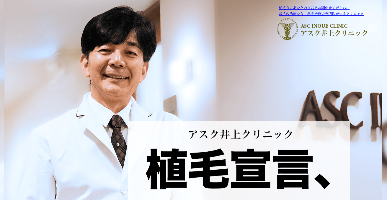 アスク井上クリニックは、自毛植毛を専門とするクリニックで、植毛界のレジェンドと称される井上院長が、患者さん一人ひとりに親身な診察と治療を提供しています。