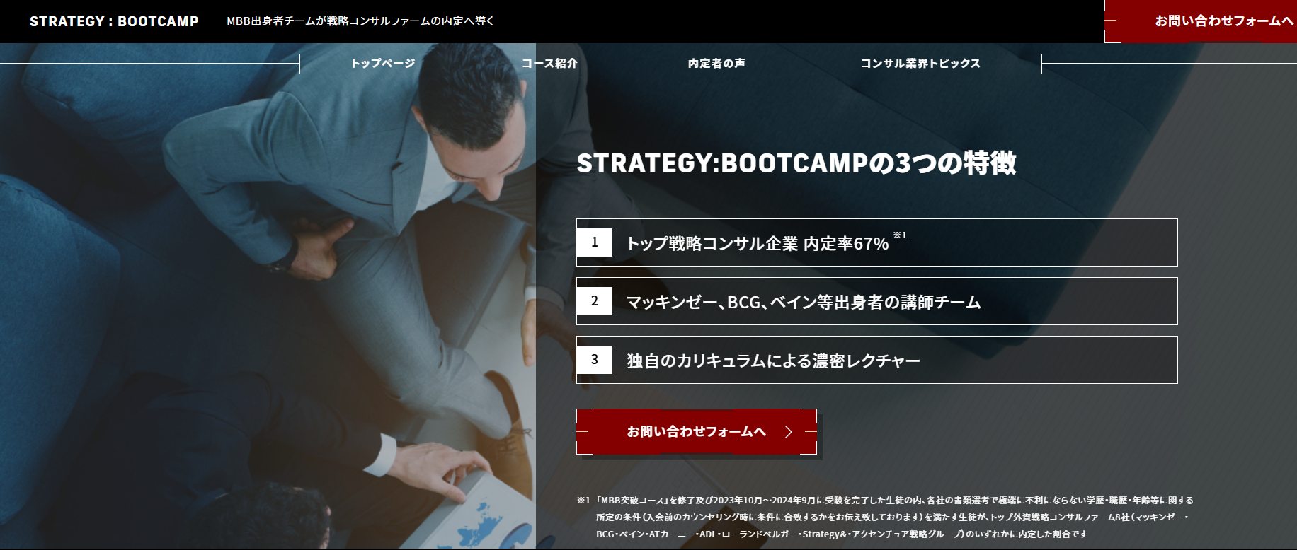 このコースは、戦略コンサル業界の平均内定率(10%未満)を大きく上回る、驚異の内定率62%という実績を誇っています。