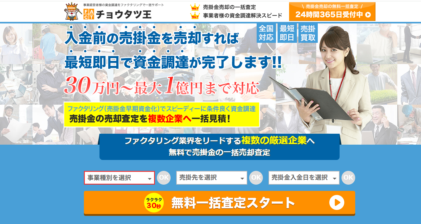 ファクタリングは複数社から相見積もりを取るのが一般的。しかし、2〜3社でも手間と時間がかかります。そこで登場したのが無料一括見積サービス「チョウタツ王」です。