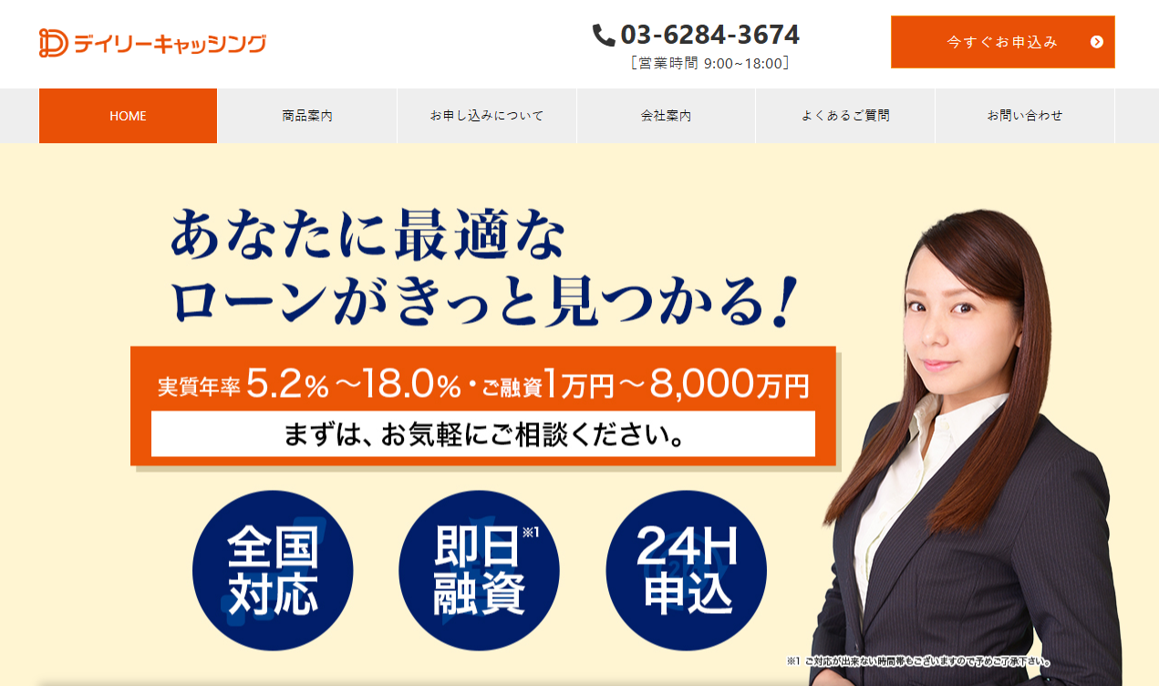 デイリーキャッシングでは、この他にも『ビジネスローン』や『不動産担保ローン』も取り扱っておりますので、様々なニーズにお応えできます。
