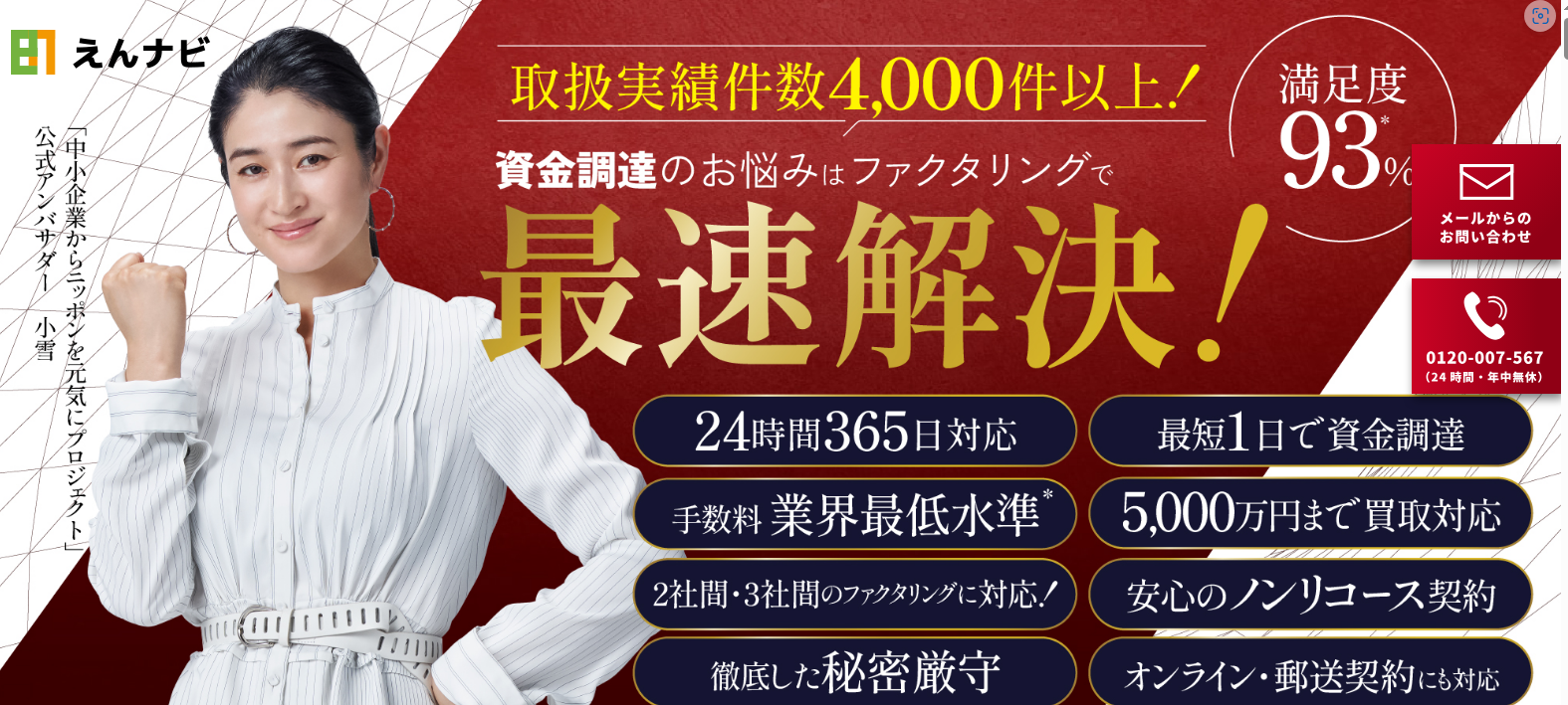 「えんナビ」は、まだ入金されていない売上を、ファクタリング会社が買い取ることで、最短1日で資金化できるサービスです。