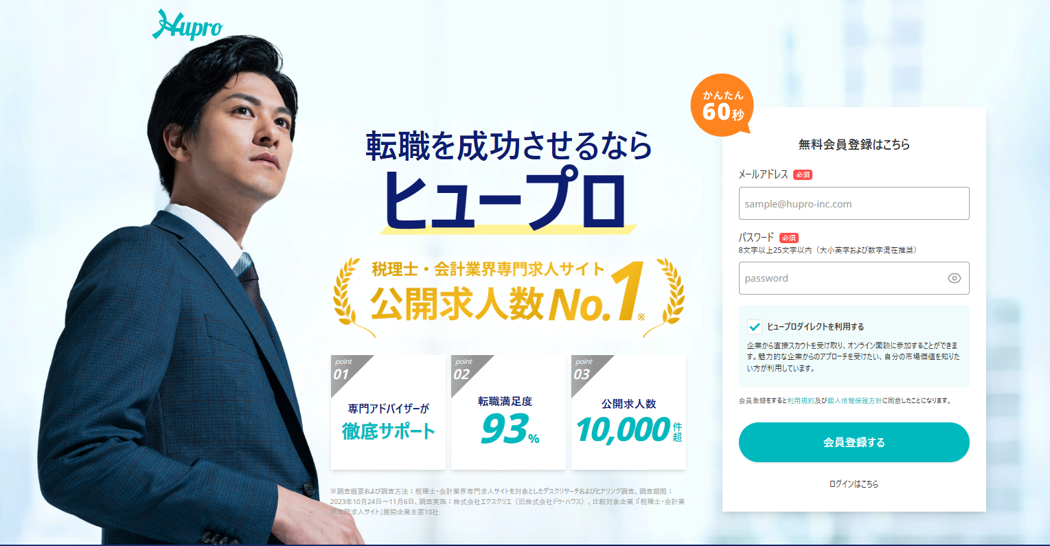 それが、税理士法人や会計事務所の転職に特化したサービス『最速転職HUPRO』です。
