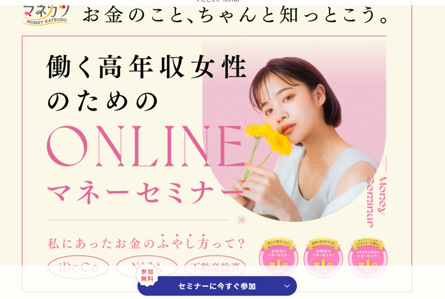 A. いいえ。勧誘や販売目的ではなく、中立的にお金の知識を学べるセミナーです。
