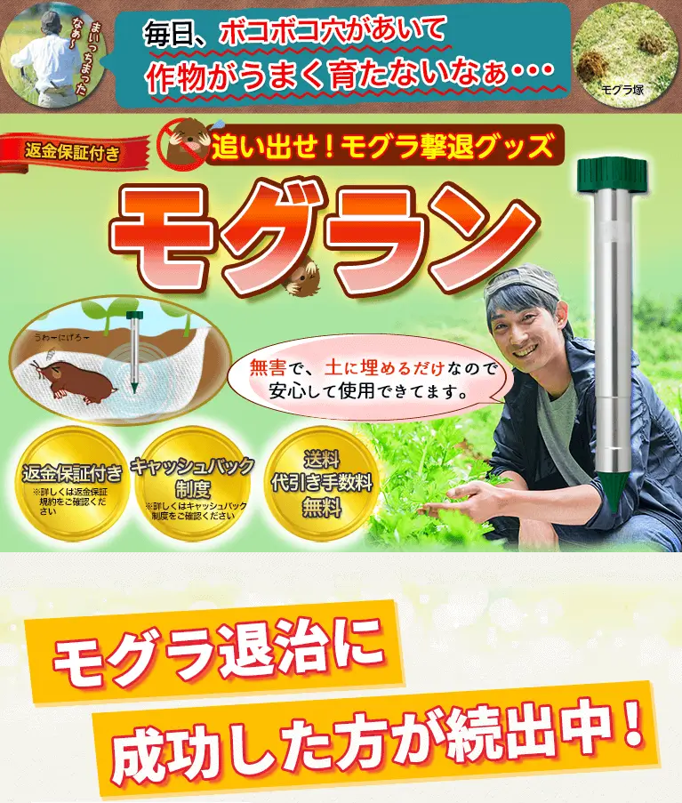 モグラの被害に悩まされることなく、安心して土地を守るために、「モグラン」をぜひお試しください。