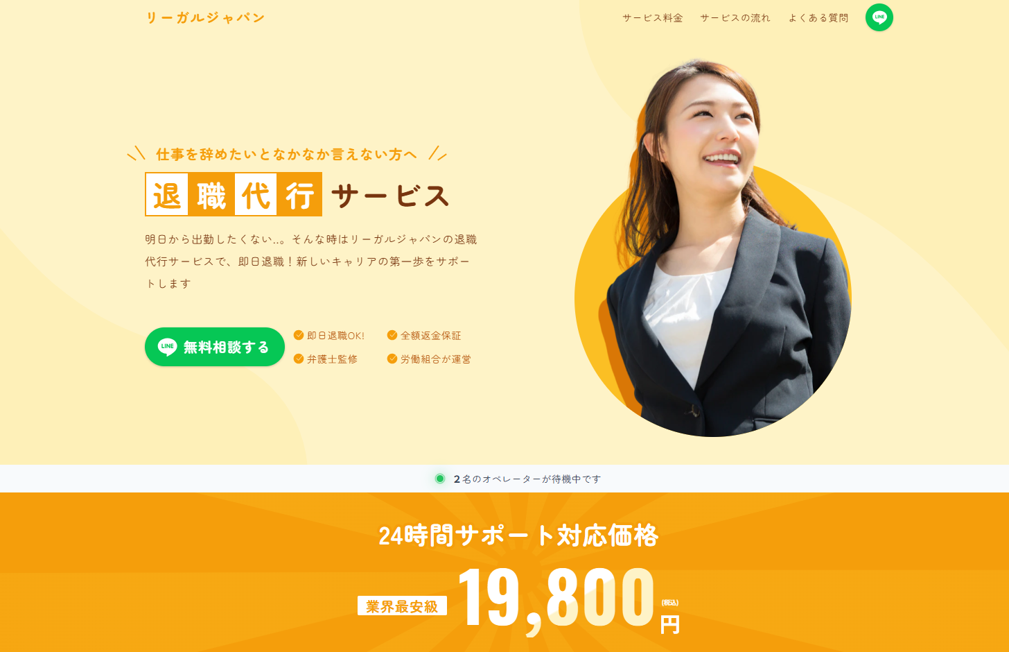 退職代行というサービスに不安を感じる方もいらっしゃるかもしれません。 しかし、ご安心ください。【リーガルジャパン】は安心安全の労働組合が運営しており、さらに弁護士が監修しています。